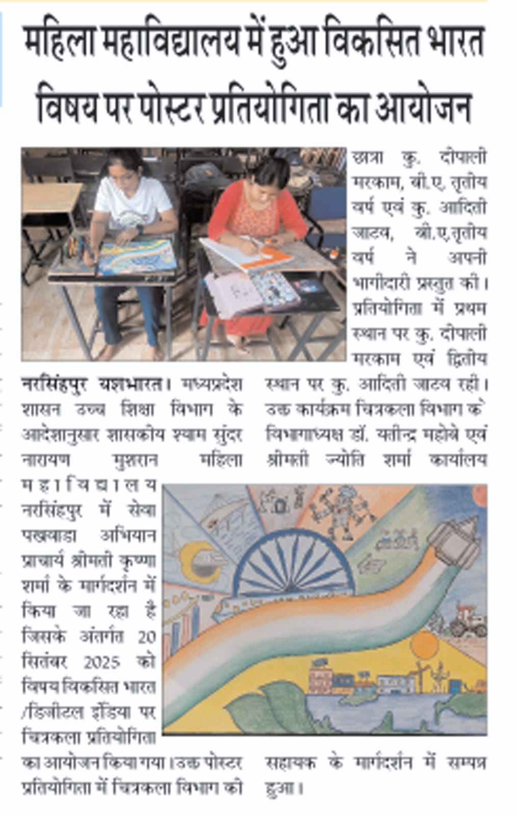 महिला कॉलेज की छात्राओं ने काेलॉज एवं स्पॉट पेंटिंग में विश्वविद ...