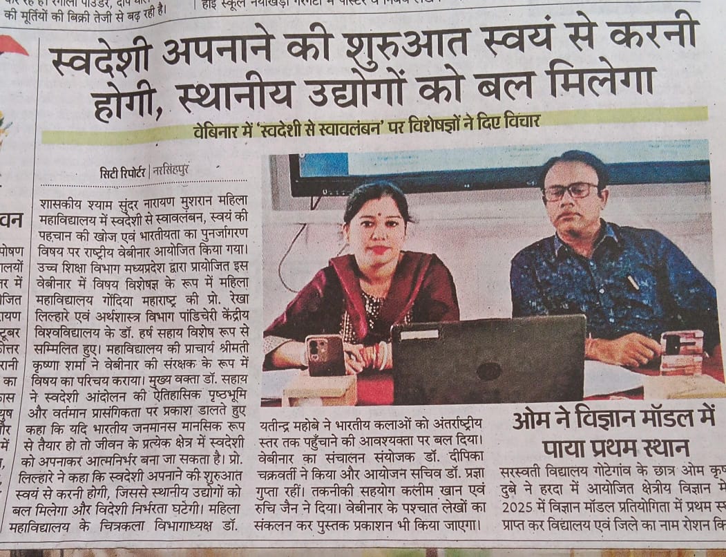 महिला नेतृत्व एक विचार के साथ सामाजिक परिवर्तन की सशक्त पहल - शासकीय महिला महाविद्यालय में राष्ट्रीय संगोठी का हुआ आयोजन
