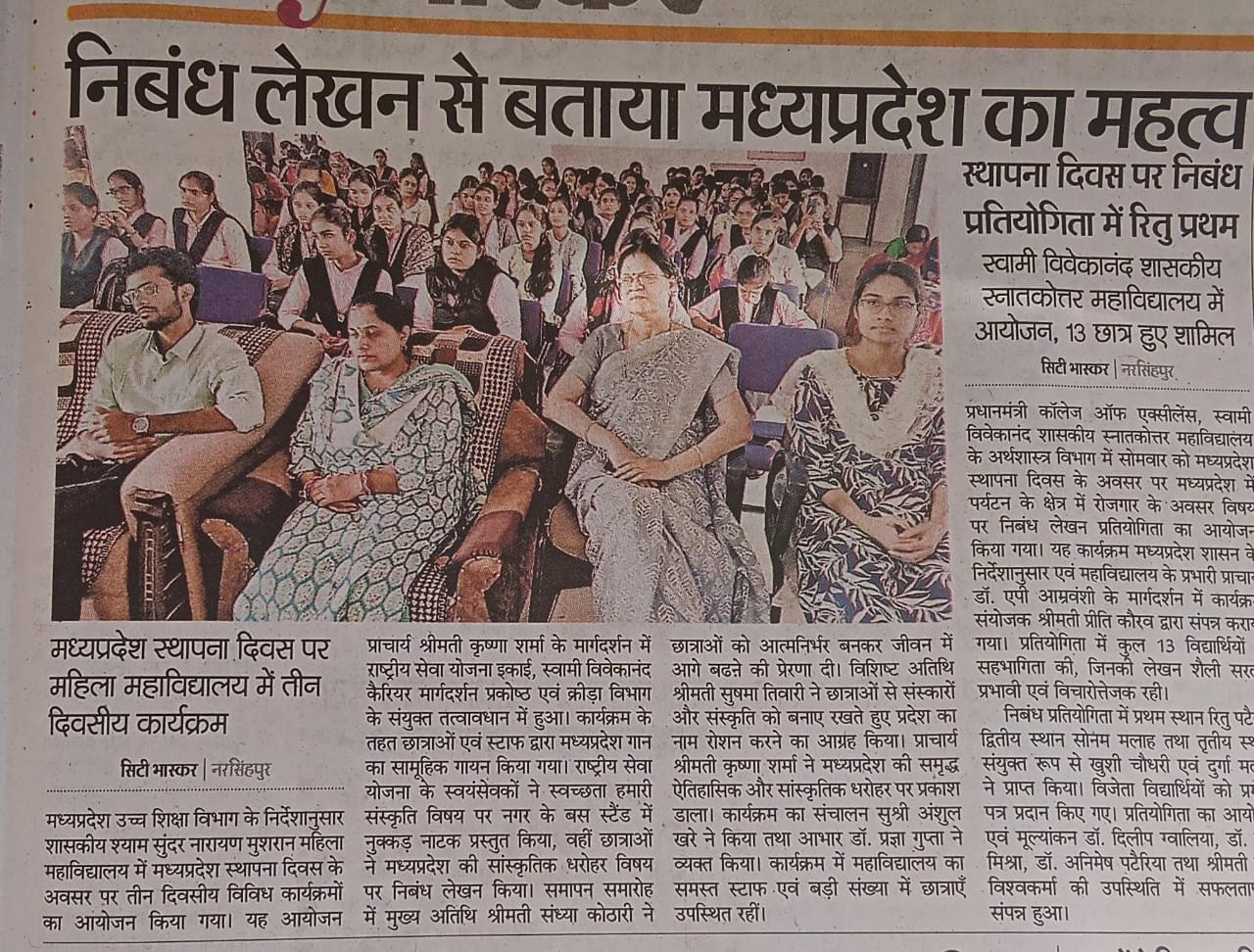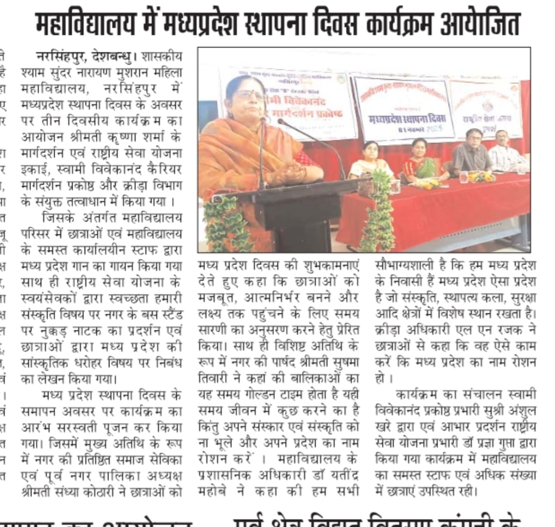 महाविद्यालय में मध्यप्रदेश स्थापना दिवस कार्यक्रम आयोजित ...