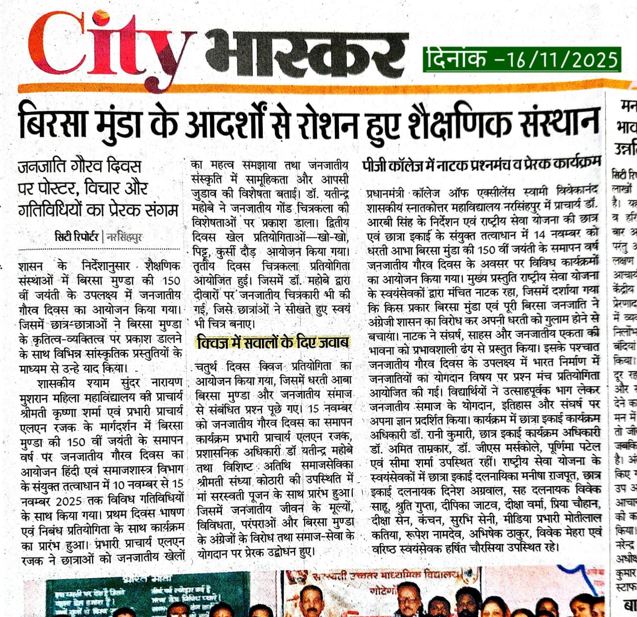 बिरसा मुंडा के आदर्शों से रोशन हुए शैक्षणिक संस्थान ...