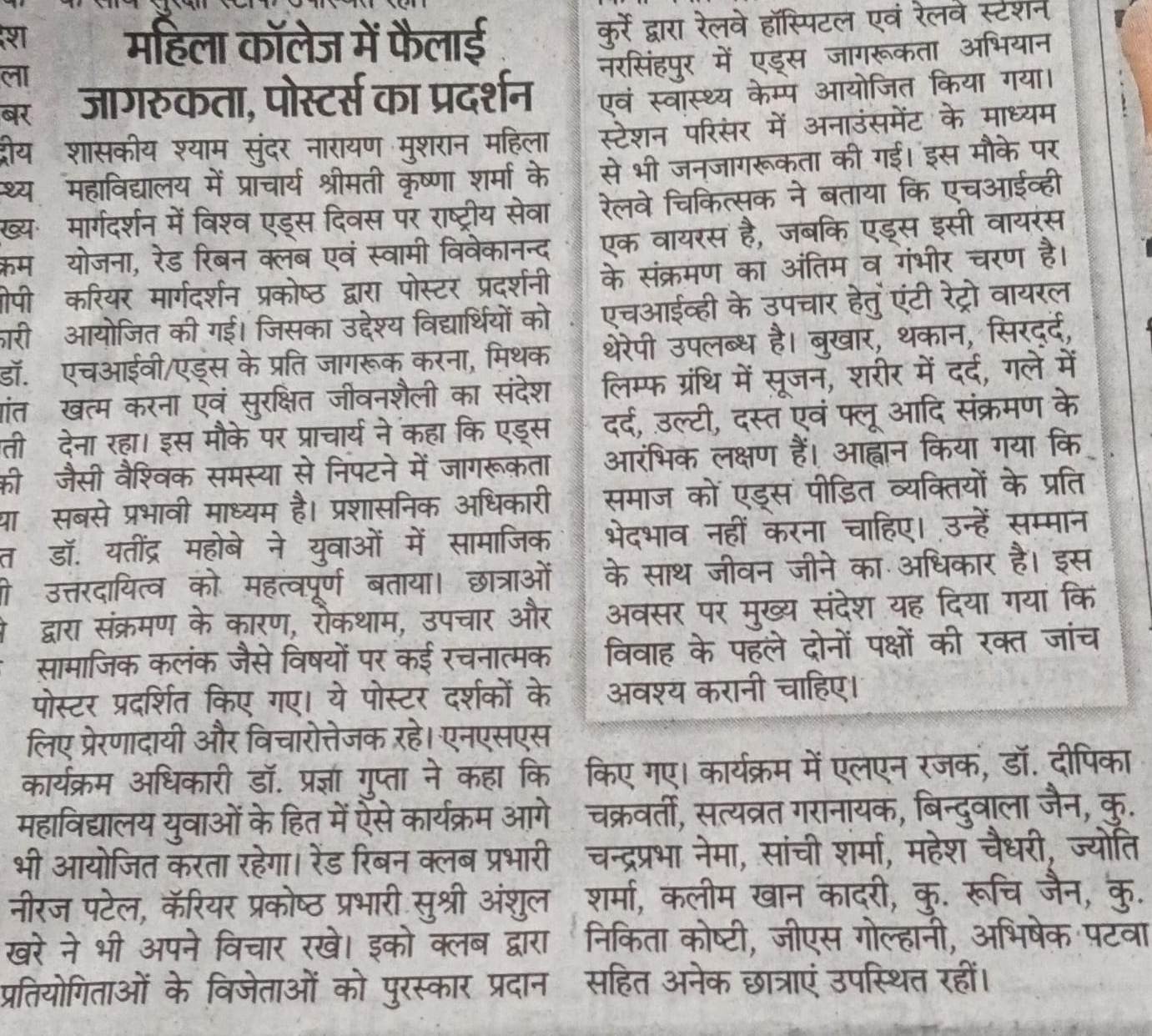 महिला कॉलेज में फैलाई जागरूकता, पोस्टर्स का प्रदर्शन ...